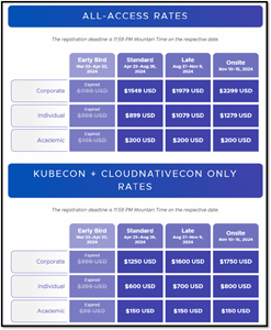 One of the great things about KubeCon is its accessibility to students via its academic pricing ($200). To qualify for this, you will need to be a current full-time student or faculty member. When registering, full-time faculty and students must upload a valid copy of their faculty or student ID.