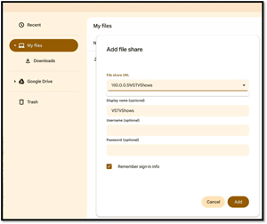 I store many of my documents, audio, and video media on an SMB folder on a NAS at my home and need to access them from the various devices that I use. Fortunately, Chrome OS Flex makes it very easy to do this.