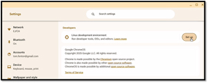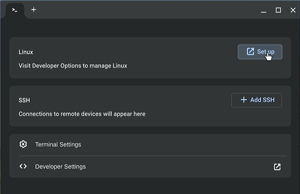 From the Terminal application, click Set up in the Linux pane.